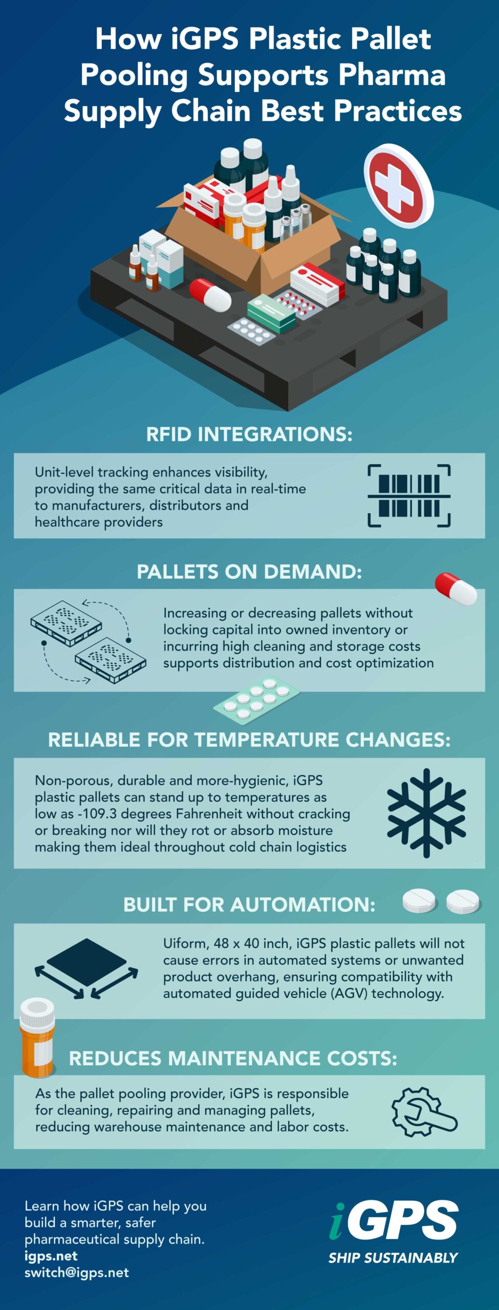 Pharmaceutical manufacturers across the U.S. are turning to iGPS plastic pallet pooling to improve compliance, traceability, and cost efficiency. Each RFID-enabled pallet is hygienic, durable, and verified for reuse—helping ensure product safety and GMP performance across every shipment. Contact 1-800-884-0225, email switch@igps.net, or visit the iGPS Contact Page to learn how iGPS can help you build a smarter, safer pharmaceutical supply chain.